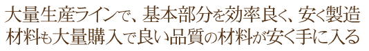 現在は過去の大量生産の技術を活かしながら、オーダー製品に応用、効率良く生産することで、リーズナブルな価格を実現。 また材料の仕入れも一括で大量に購入するのでより安く、良い品質の材料の仕入れができるそうです。